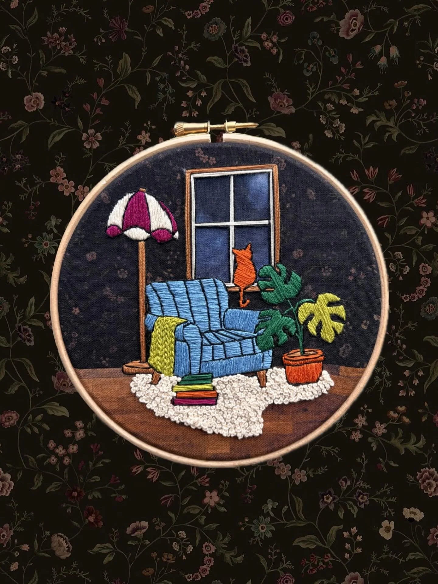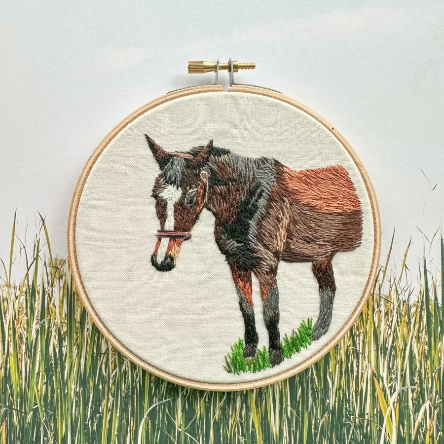 Each embroidery piece is handmade by Murriel Mapa, a fibre artist based out of Edmonton. Using a needle and thread, she is able to recreate recognizeable landmarks, pet portraits, and everything in between. Her pet portraits are made using a method called “threadpainting,” which uses long and short threads and many floss colours in order to create shadows and hues that capture small details. Pet portraits and other custom embroideries* can be ordered on the Shop page.